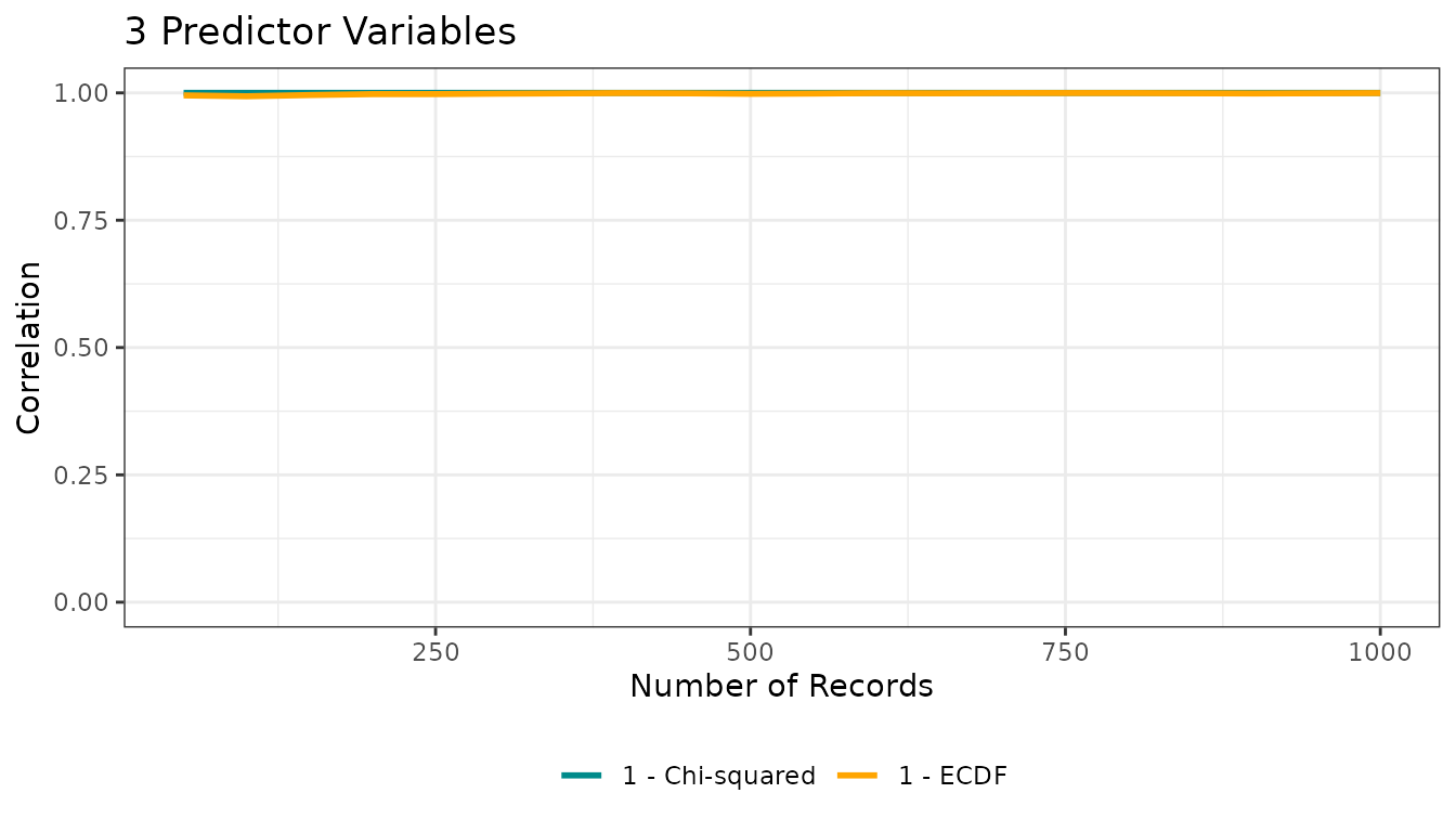 These arguments control the dimensionality, the size of the environmental “background”, and the grid of sample sizes used to compute correlations.